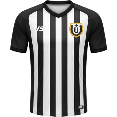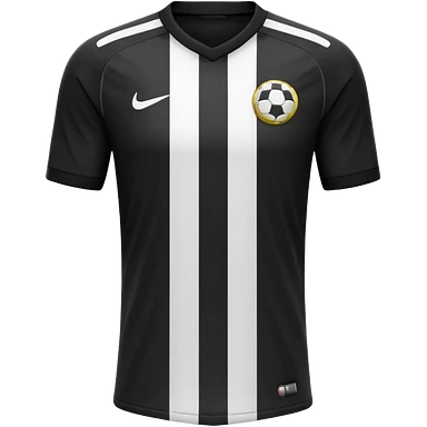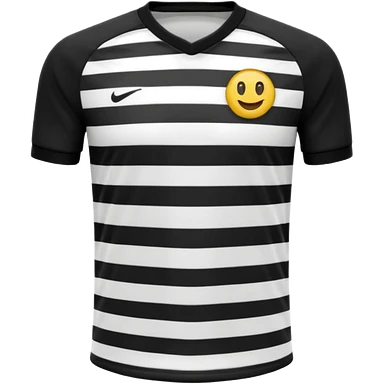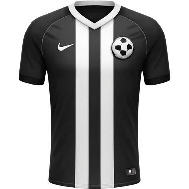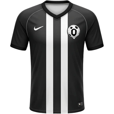 Soccer jersey emoji, cartoon emoji style, front view, black football shirt with a bold vertical white stripe in the center, clean and minimal design, no logo, no sponsor, short sleeves, black round collar, emoji
