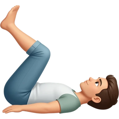 one knee up 90 degree in the knee. the other knee is flat on ground lying on back. from side emoji