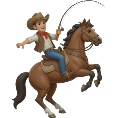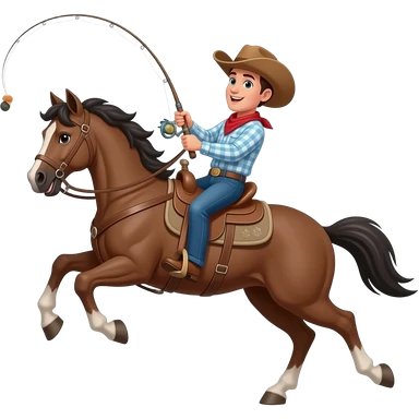 a cowboy falling off a horse with a fishing rod in his hand emoji
