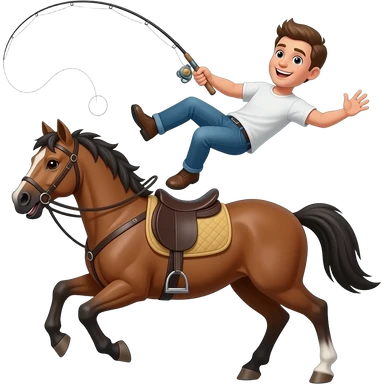 a cowboy falling off a horse, with a fishing rod in his hand emoji