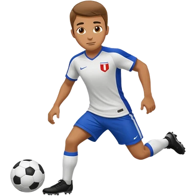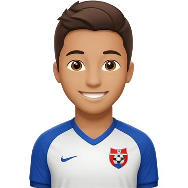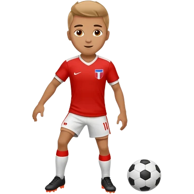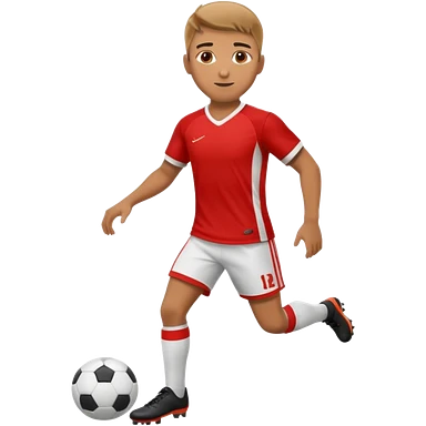 Scoring soccer goal wearing red and black stripe jersey emoji