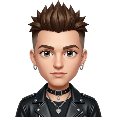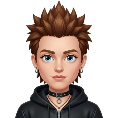 30 years old asd nonbinary woman punk boyish, spiked-up brown hair feminine, narrow face emoji