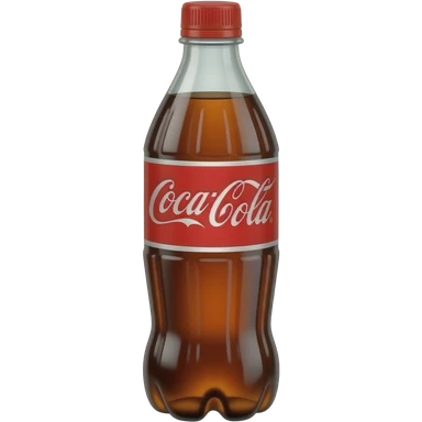 soda bottle, plastic, dark brown or bright soda, narrow neck, colored cap, bubbles for carbonation, fizzy and refreshing, 3D-rendered, minimal, no faces emoji