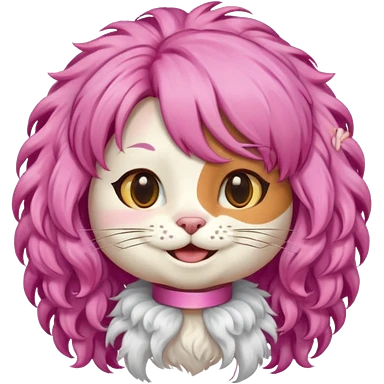 calico cat wear curly pink hair wig emoji