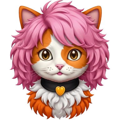 calico cat wear long pink hair wig emoji