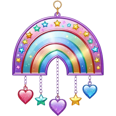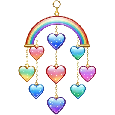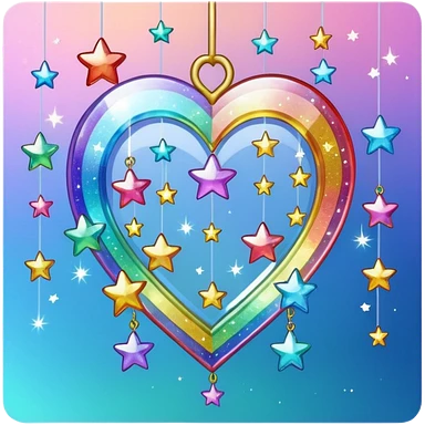 Sparkly glittery aesthetic Iridescent rainbow suncatcher hanging hearts and tiny stars emoji
