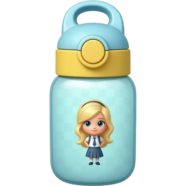 soft blue yellow school Water bottle, transparent background inspired by barbie colour pallete emoji | AI Emoji Generator