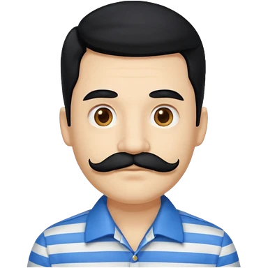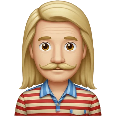 Soft male caucasian Trader Joe's employee with tropical shirt and hipster handlebar-type moustache and brown hair. 34 years old. emoji | AI Emoji Generator
