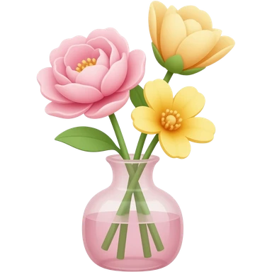 soft pink yellow flowers vas , transparent background inspired by barbie colour pallete emoji
