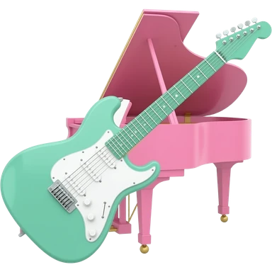 soft pink green piano and guitar, transparent background inspired by barbie colour pallete emoji