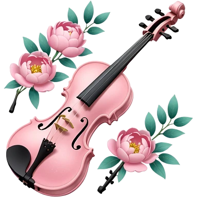 soft pastel pink violin with peonies and glitter emoji | AI Emoji Generator