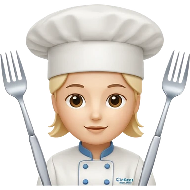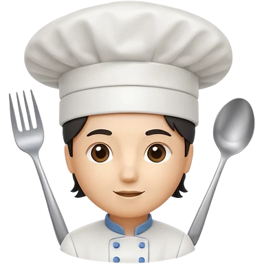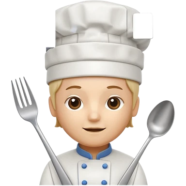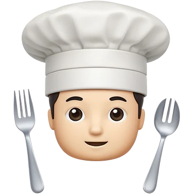 rounded square mobile app logo design, 3d icon of a chef's hat and a fork combined, subtle gradient, minimal soft blue background, flat design, clean, professional food service icon emoji