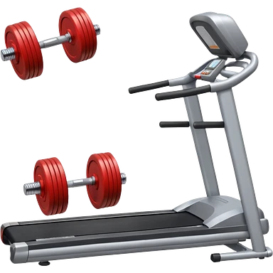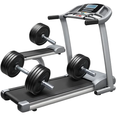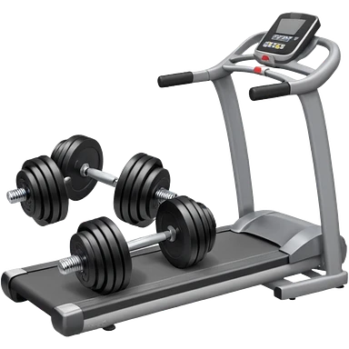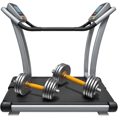 Two heavy dumbbells side by side in front of a treadmill emoji
