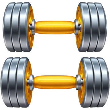 Generate a high-quality image of two cute, small yellow dumbbells for home workouts stacked in a cross shape on a plain white background, rounded edges, soft and smooth surface, realistic shading and lighting, no logos or brand markings, high-resolution. emoji