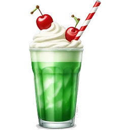 soft green soda drink with cream and cherry on top, red and white striped straw in glass emoji