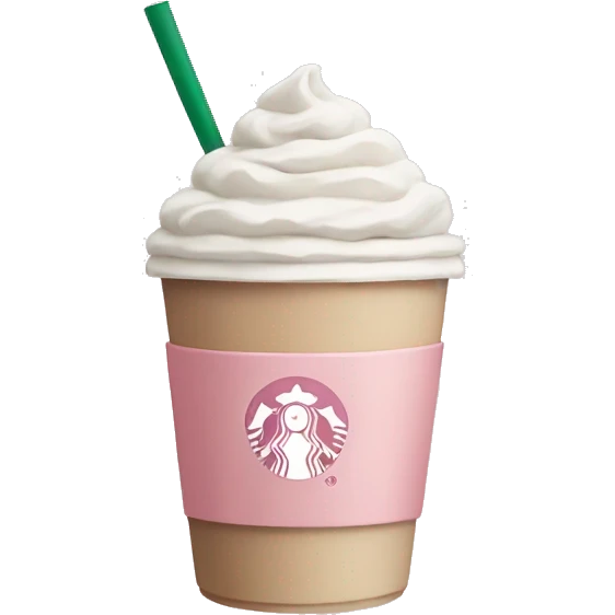A 3D cartoon Starbucks Frappuccino cup with whipped cream and caramel drizzle, frosty texture, green straw, transparent cup with logo, soft cool lighting, Memoji-style. emoji