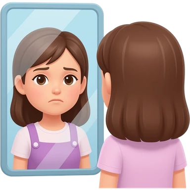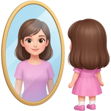 mirror with soft glow, minimal vector, pastel colors. reflection showing little girl transforming into adult woman, symbolic, clean flat design emoji
