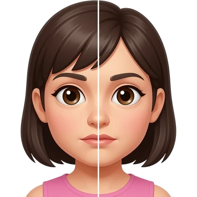 girl with black hair and the hair transforming into black hair with bangs that are half teal emoji