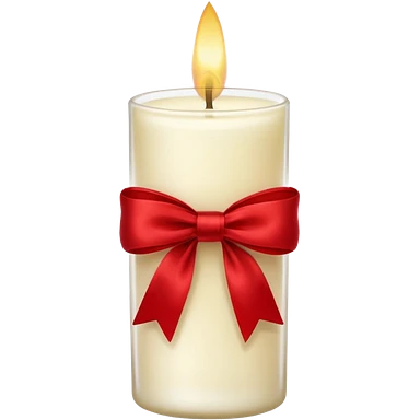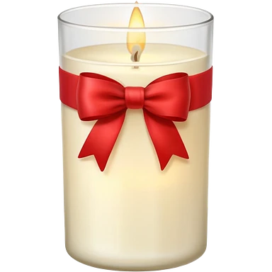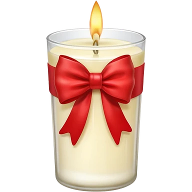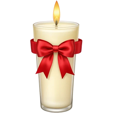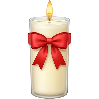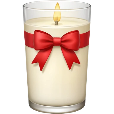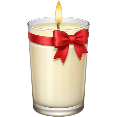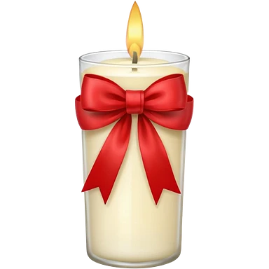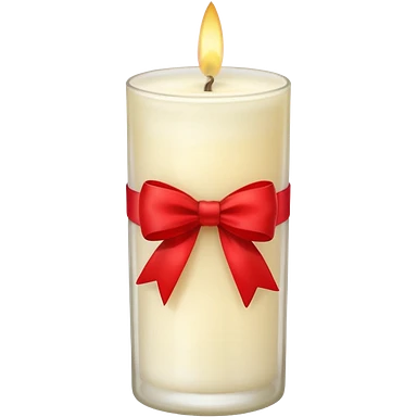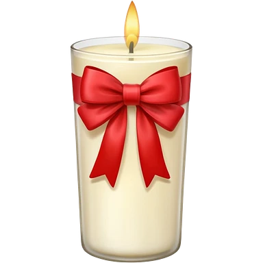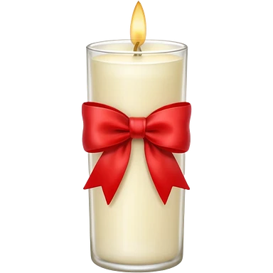 Soft vanilla long glass candle, with little red bow emoji | AI Emoji Generator
