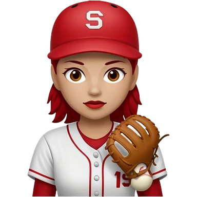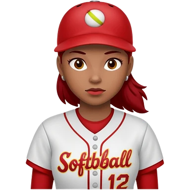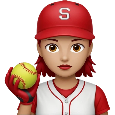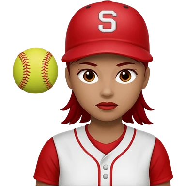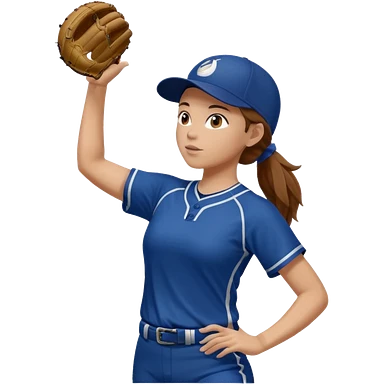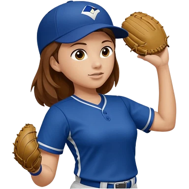 Softball pitcher pitching the ball from side view with brown hair and dark blue jersey and no hat and a face guard emoji