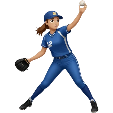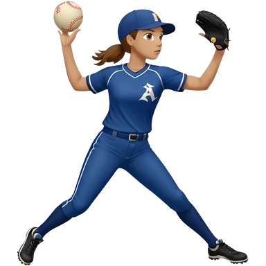 Softball pitcher pitching the ball from side view with brown hair and dark blue jersey and no hat emoji