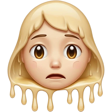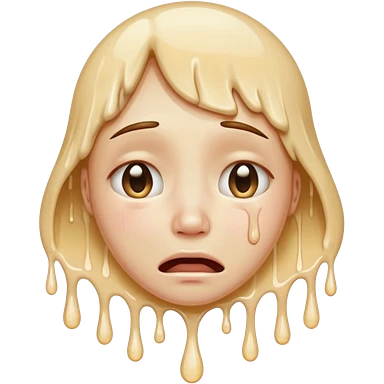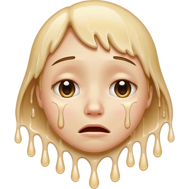 softly smiling crying face that appears to be melting downward, large glossy drip like emoji, combined with the smooth dissolving lower half similar to the melting face. ‘I’m okay :) but absolutely not okay’ emoji | AI Emoji Generator