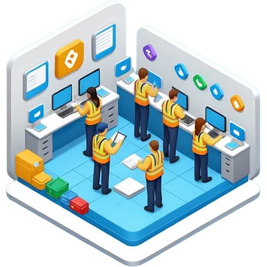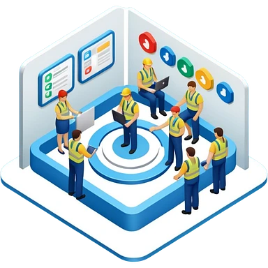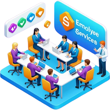 isometric, image of employee services, case management, crew operations integrating together as processes and systems emoji