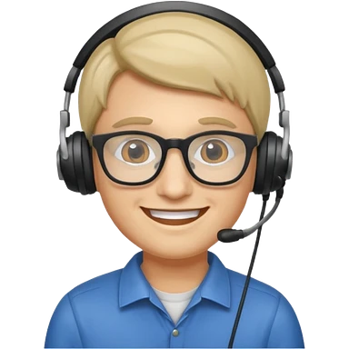Software engineer (white male, buzz cut hair, with white headphones) in front of laptop, apple-style emoji