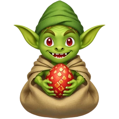 A pixel art goblin with a cloth sack over its back filled with dragon eggs. emoji