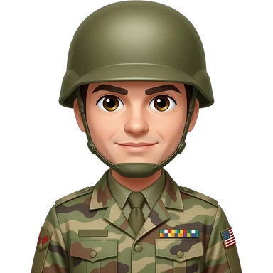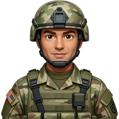 A soldier in military uniform, wearing camouflage, helmet, and boots. Holding a rifle or standing at attention, embodying strength, discipline, and service emoji