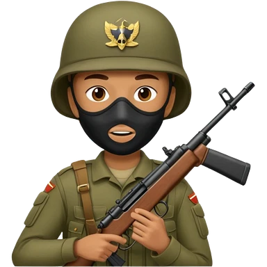 Soldier holding rifle with mask on emoji | AI Emoji Generator