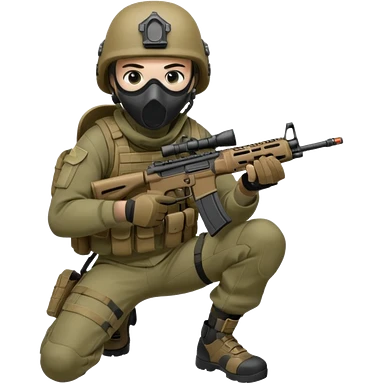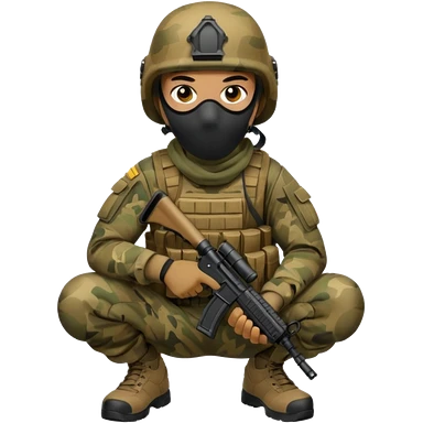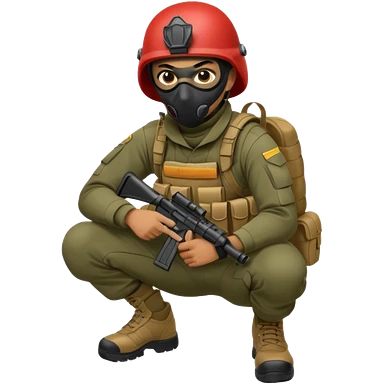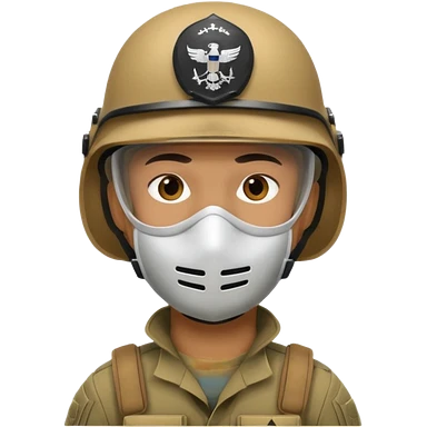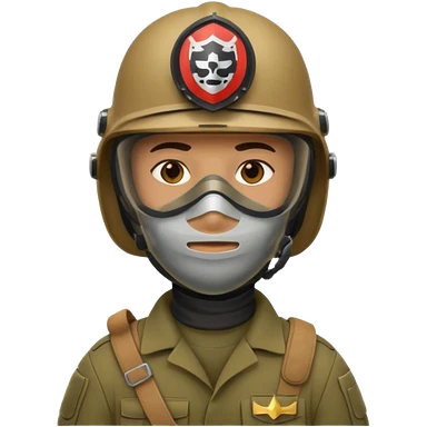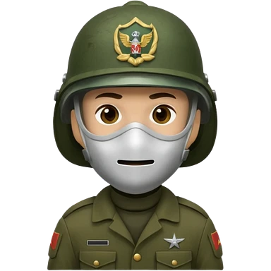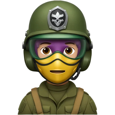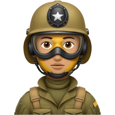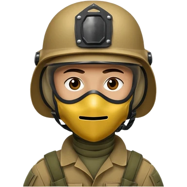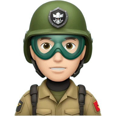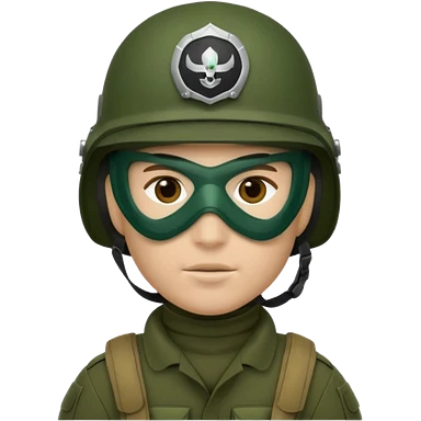 Soldier emoji head in green military helmet, large ear protectors, headset microphone, light green checkered scarf around neck, gray face, confident greeting pose with right hand raised in salute, vibrant colors, high detail on helmet textures and fabric, bust view, ultra-detailed PNG alpha channel emoji