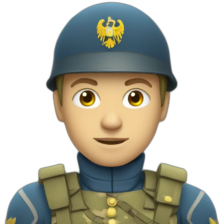 Ukrainian soldier against the background of the Ukrainian flag emoji