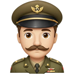 soldier with a square mustache with mad eyebrows. emoji | AI Emoji Generator