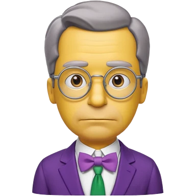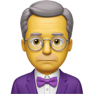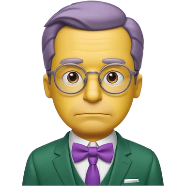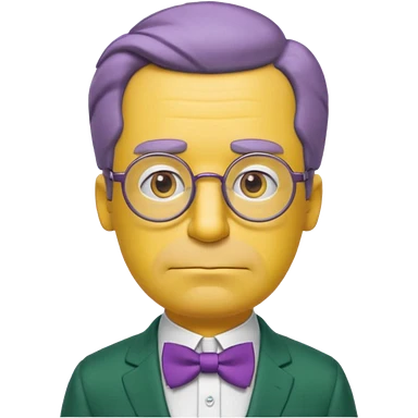 simpsons yellow man with neatly parted brown-gray hair, thick rectangular eyebrows, large round eyes behind thin glasses, a pointed nose, and a green suit with a white collar and purple bow tie. emoji