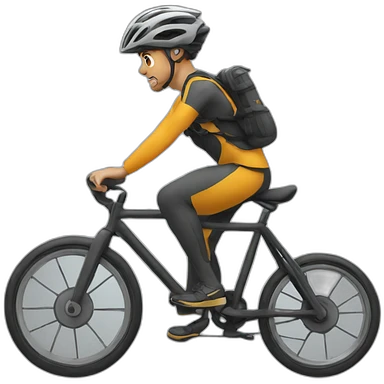 Mountain biker con bicicleta de color verde, y ropa de color naranja y negra, corriendo a mucha velocidad emoji