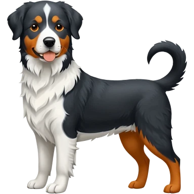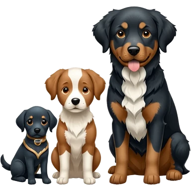 Un chien de chasse, épagneul breton, avec un labrador noir, et un berger Australien bleu merle. emoji