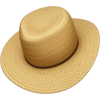 Sombrero de paja con una tira roja en la parte central sin ninguna soporte solo una tira como el de abajo a la derecha sin la flor y sin la tira roja en la parte saliente emoji