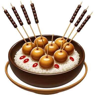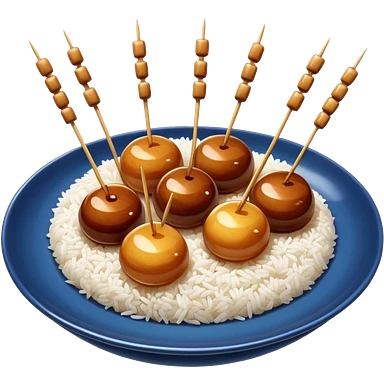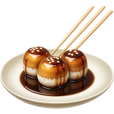 Mitarashi dango with shiny soy sauce glaze drizzled over white rice emoji