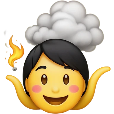 A yellow emoji blowing smoke out and having black hair like a rapper krendric lamar emoji