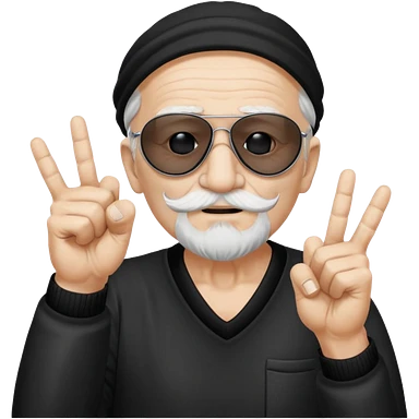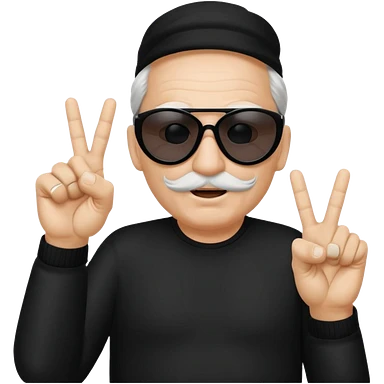 Some white old guy with a mask on and black shades with it also holding up the middle fingers emoji | AI Emoji Generator