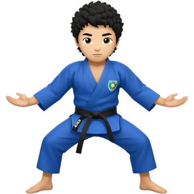 An Asian blue belt man with a bit curly hair doing Brazilian jujitsu emoji