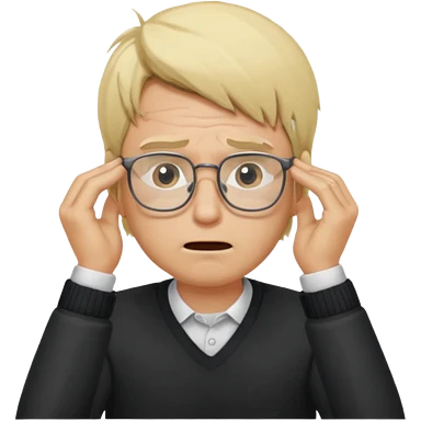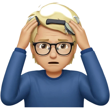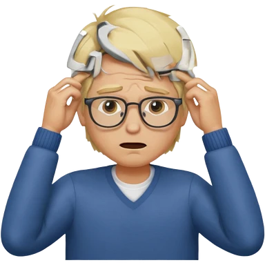 Man pulling hair out with glasses and blonde emoji