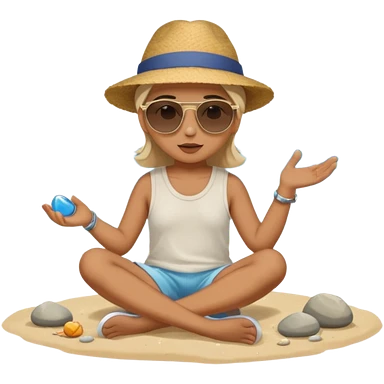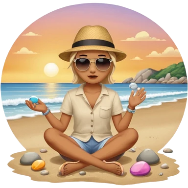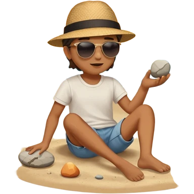 Someone sitting on the ground in the Beach close to the water and throws stone at the water and it's a sunrise emoji | AI Emoji Generator