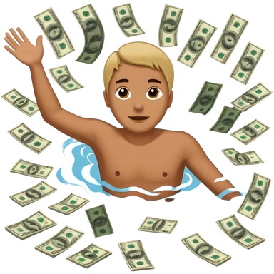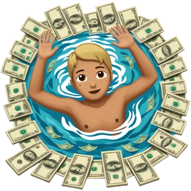 someone swimming in 5 dollar bills emoji