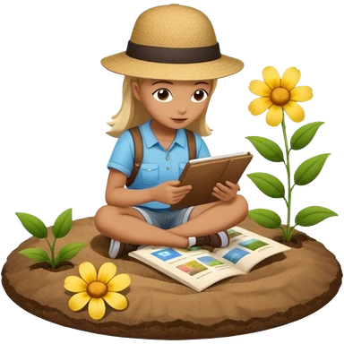 someone who's walking on a path and the person is reading a panel to learn about a flower. the person is redaing a panel which is on the ground emoji