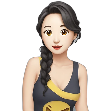 “Cartoon emoji of black hair Gong Hyo-jin, long narrow face, sharp jawline, small almond eyes, high nose bridge, elegant smile, minimal makeup, refined aura” emoji