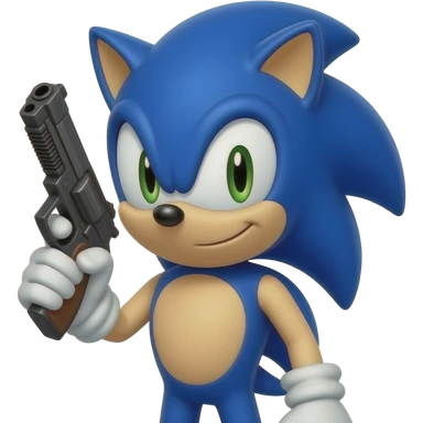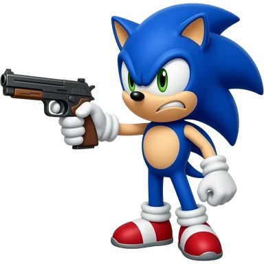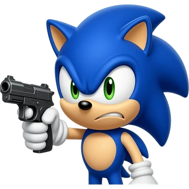 Sonic the hedgehog holding a gun and angry, looking at it emoji