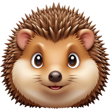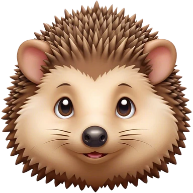 Cinematic Cute Hedgehog Portrait Emoji, Head tilted playfully and inquisitively, featuring a fluffy, spiky brown Fur with an irresistibly cute, round face and tiny ears, round, sparkling eyes filled with curious wonder, Simplified yet irresistibly adorable features, highly detailed, glowing with a warm, friendly glow, high shine, affectionate and quirky, stylized with a touch of woodland whimsy, bright and endearing, soft glowing outline, capturing the essence of a mischievous yet loving hedgehog, so playful it feels like it could roll out of the screen and into your arms! emoji