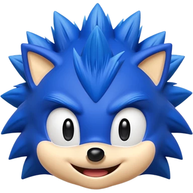 Sonic the Hedgehog,a blue hedgehog with green eyes and blue fur he has 3 spines in the middle 2 up and down he has a smirk and a black round nose emoji
